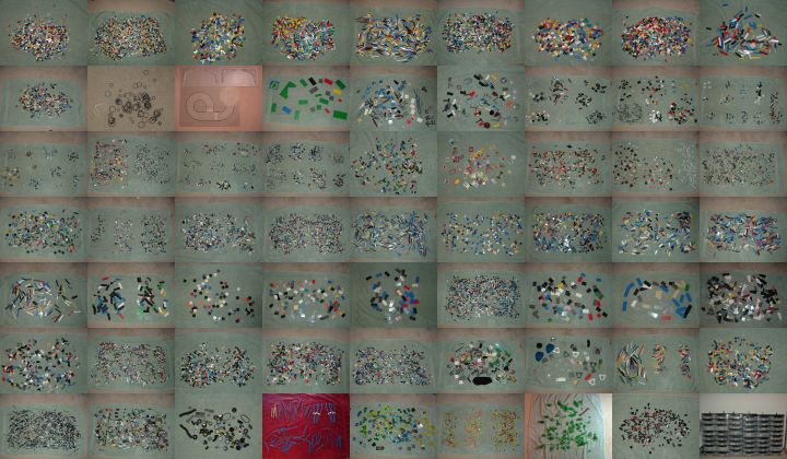 The collection is housed in 48 plastic storage bins. Some bins are subdivided, yielding 72 categories total.
